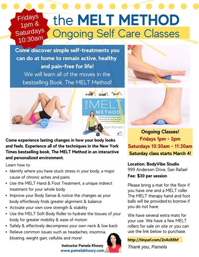 Come discover simple self-treatments you can do at home to remain active, healthy and pain-free for life! And, we will learn all of the moves in the bestselling Book, The MELT Method!