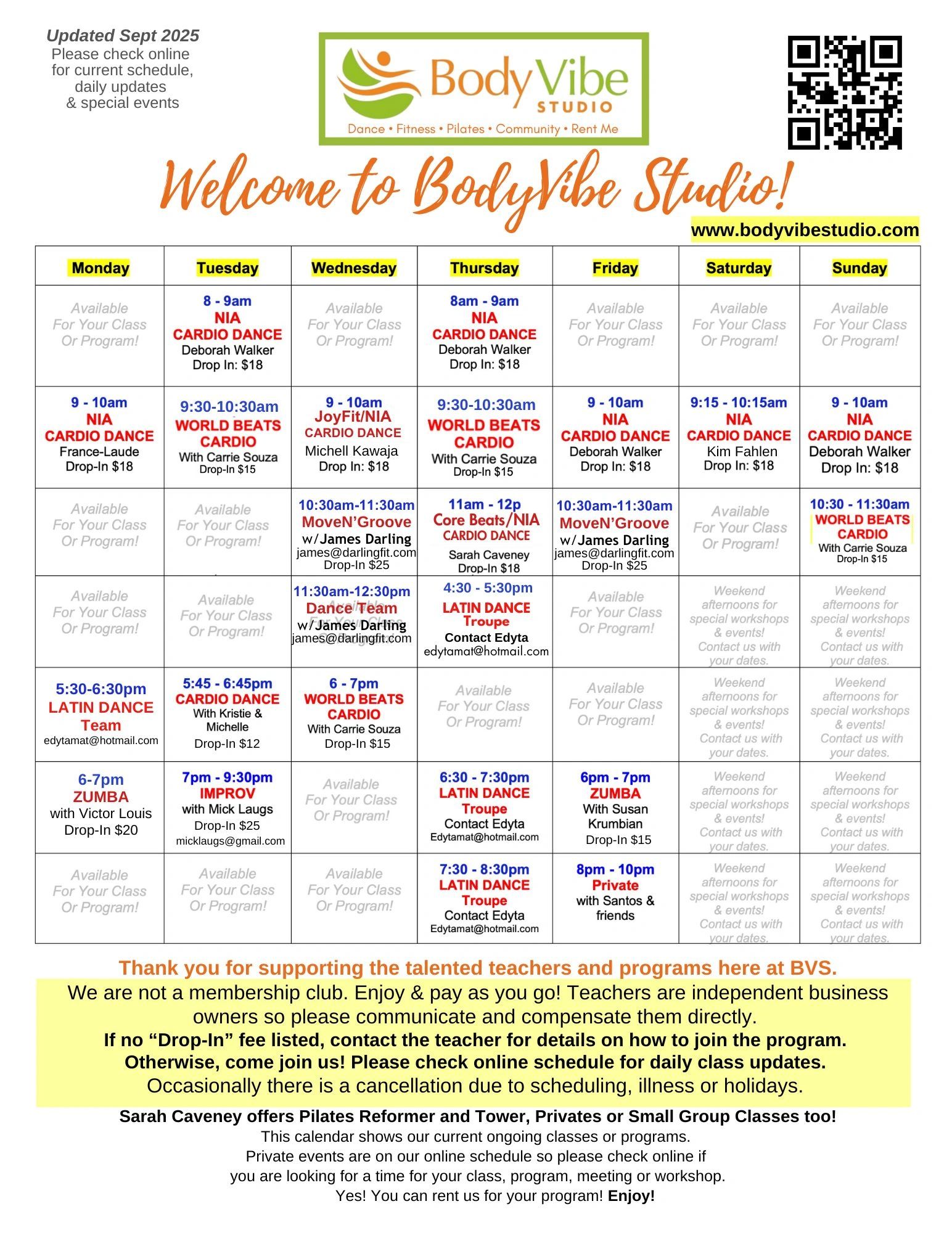 Come dance, laugh, get fit and stay healthy with our wonderful teachers, artists, entrepreneurs and cozy facilities. Join us today for a healthier tomorrow! Nia class schedule click here.